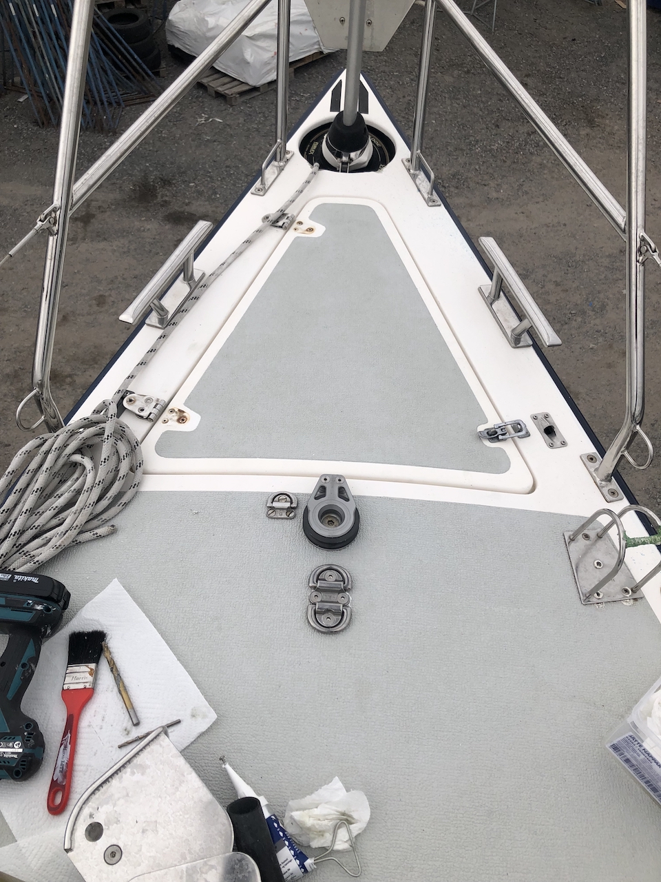 What needed to be done was way more extensive than what we had hoped. Storing stuff such as fenders and lines in the anchor box was also something we could not do with a bow windlass.