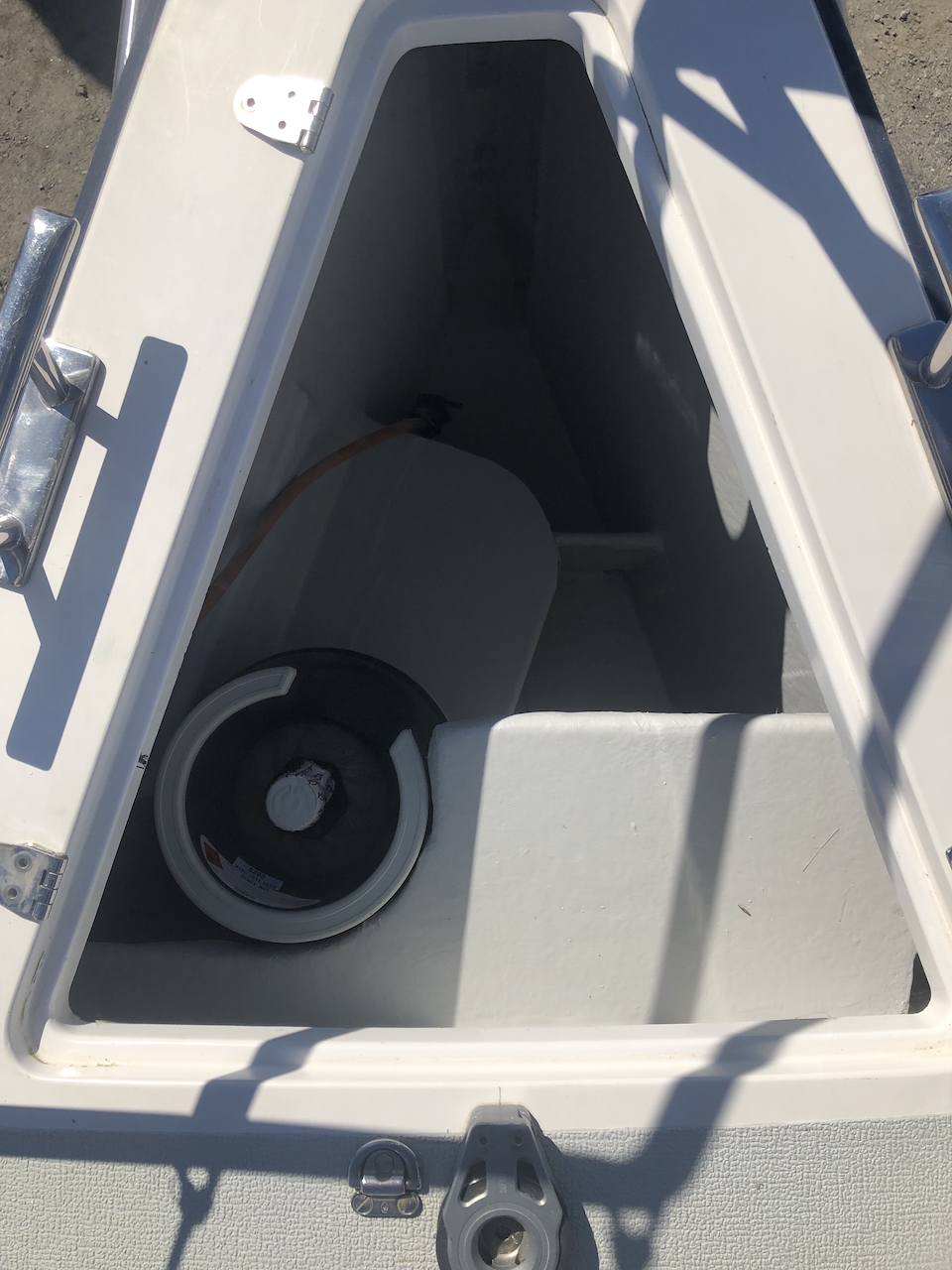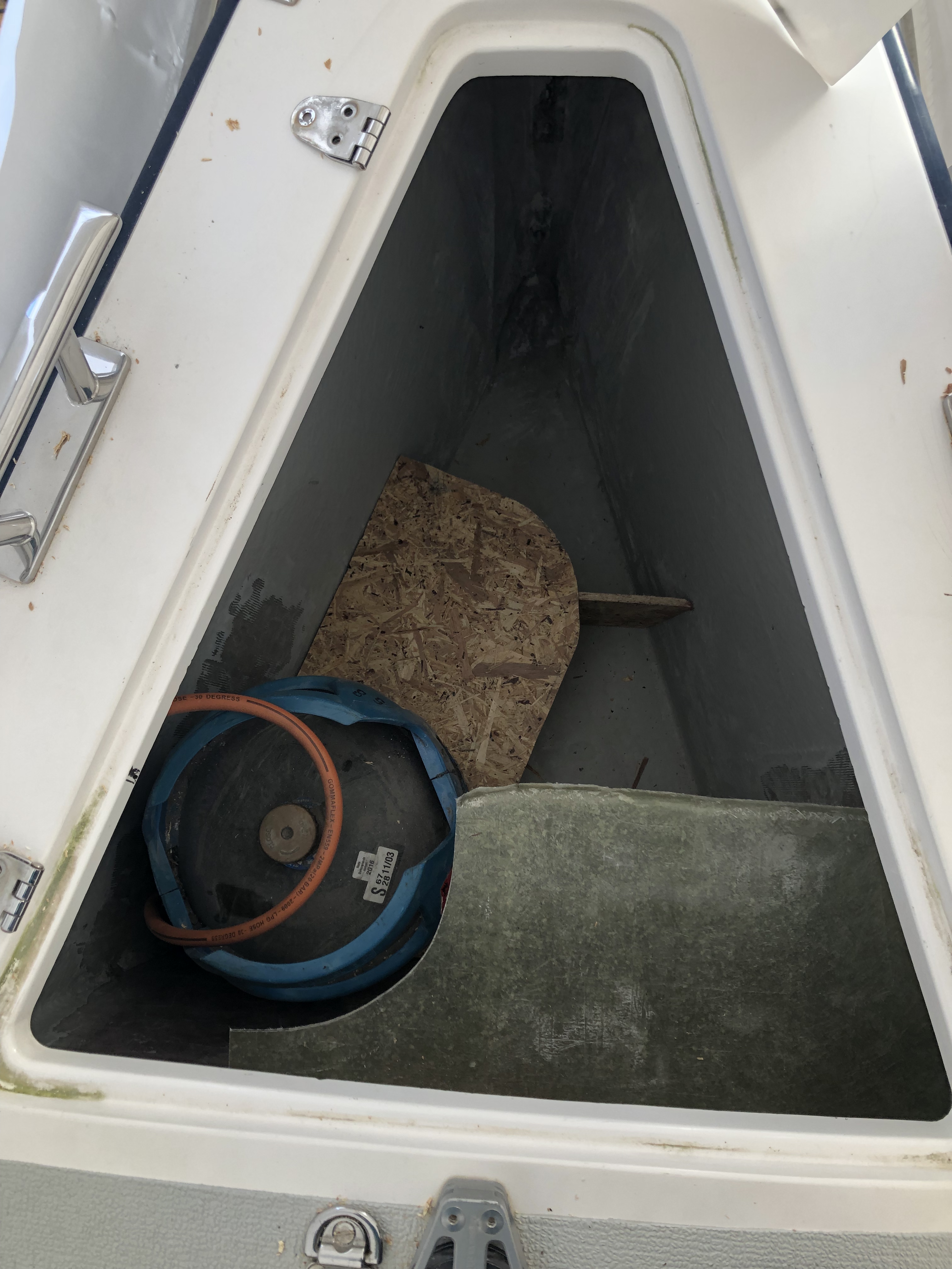 - The existing shelf for LPG bottles in the anchor box could only fit the small Swedish 2 kg camping bottles