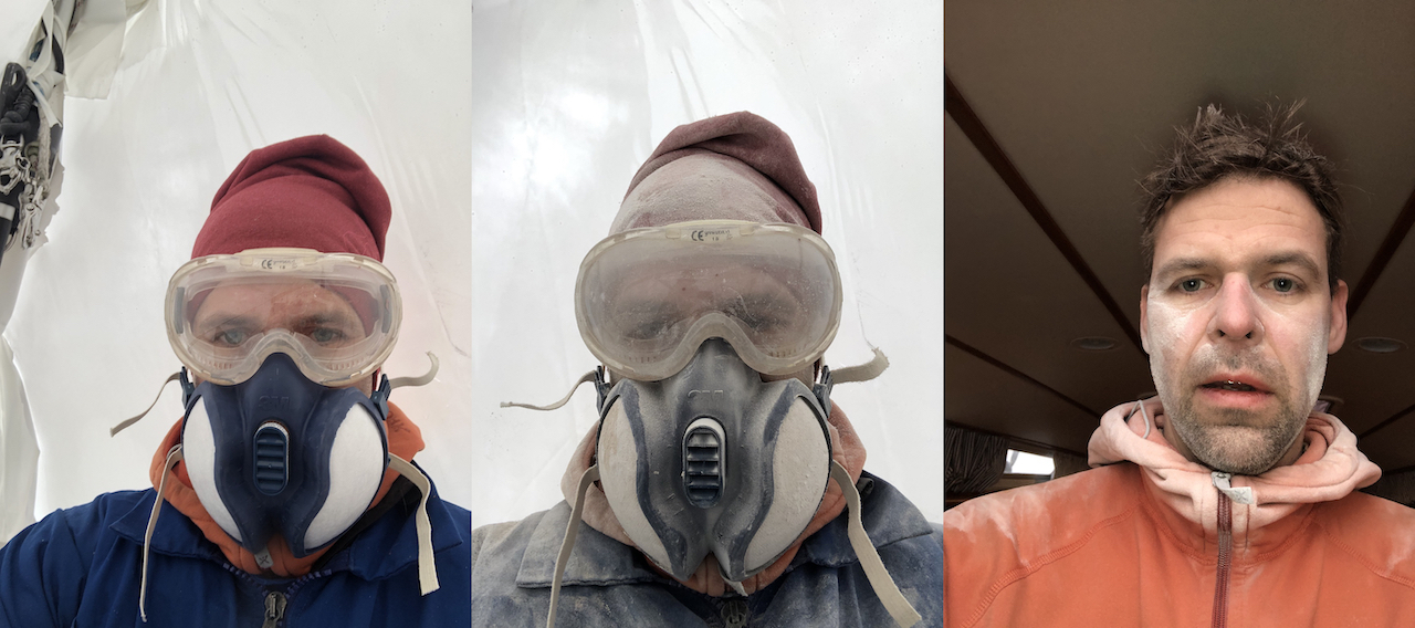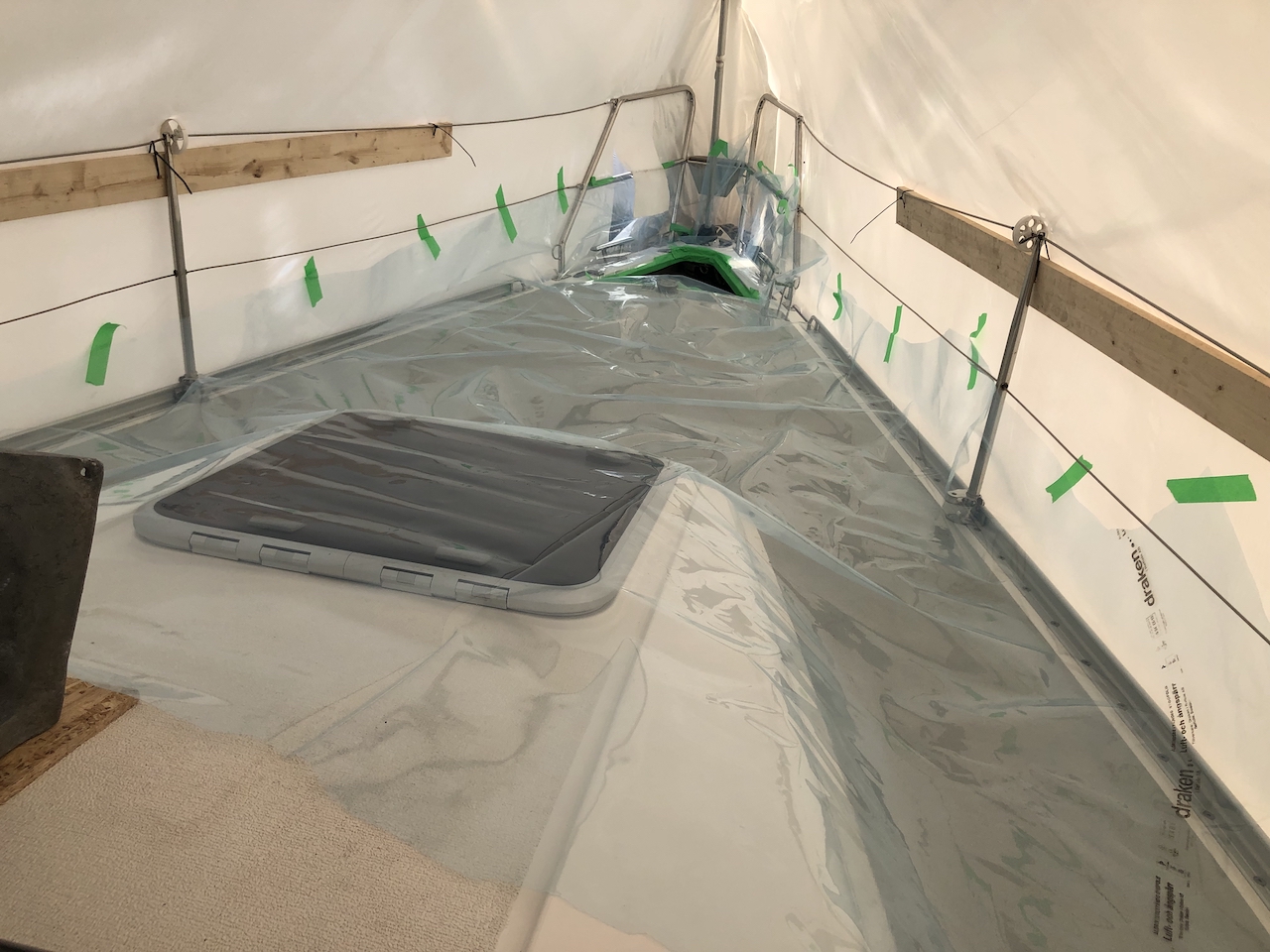 To not mess up the deck everything had to be protected as well. Not fun if we spill polyester on the deck.