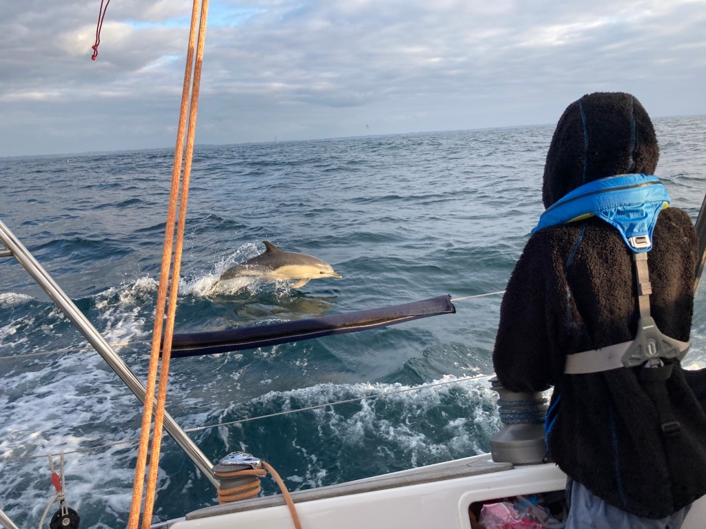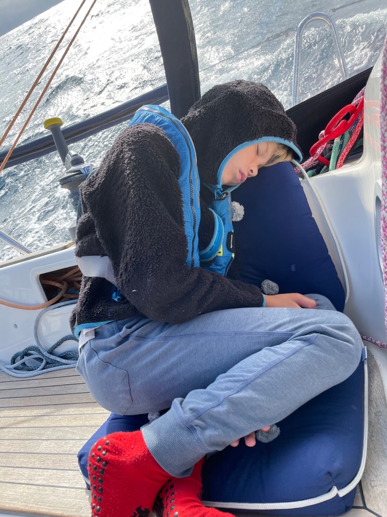 With the rough start battling both tide and huge waves, getting escorted by dolphins was amazing and kept us occupied for several hours. Just looking at them and having several groups follow us past sundown. After the first night, everything became much calmer and we found routines and life on board went more smoothly. The wind was perfekt, and we sailed almost the whole way. We miss our finnish friends on SY Sundance, so it was wonderful to hear their voices on the VHF the first evening when we were still within VHF range!