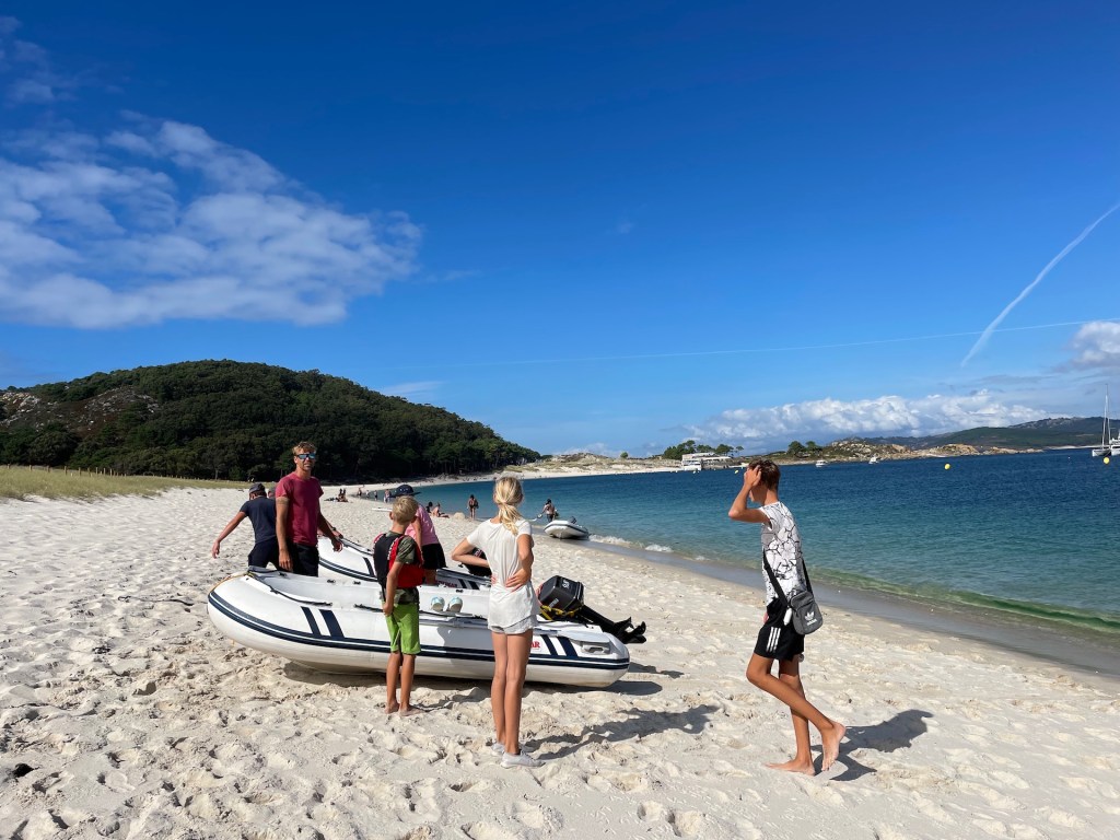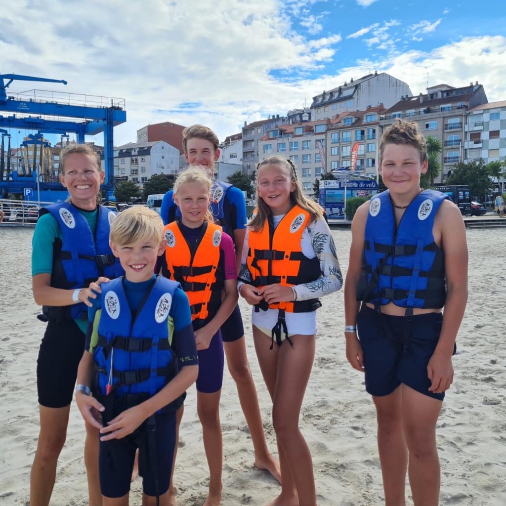The weather is warm and sunny, and the winds are either southerly or non existent. Hence, we decided to stay in Galicia to fully enjoy the easy life on anchor instead of going to the marinas and cities of Portugal. Or not only at anchor, we did a stop in Portonovo. And what a good stop it was, especially for the kids! Both visiting a water park and the next day having a movie night with a sleepover with the kids from Sundance. We also tried to get the second covid-19 vaccination shot for Axel, but weren’t succesful.