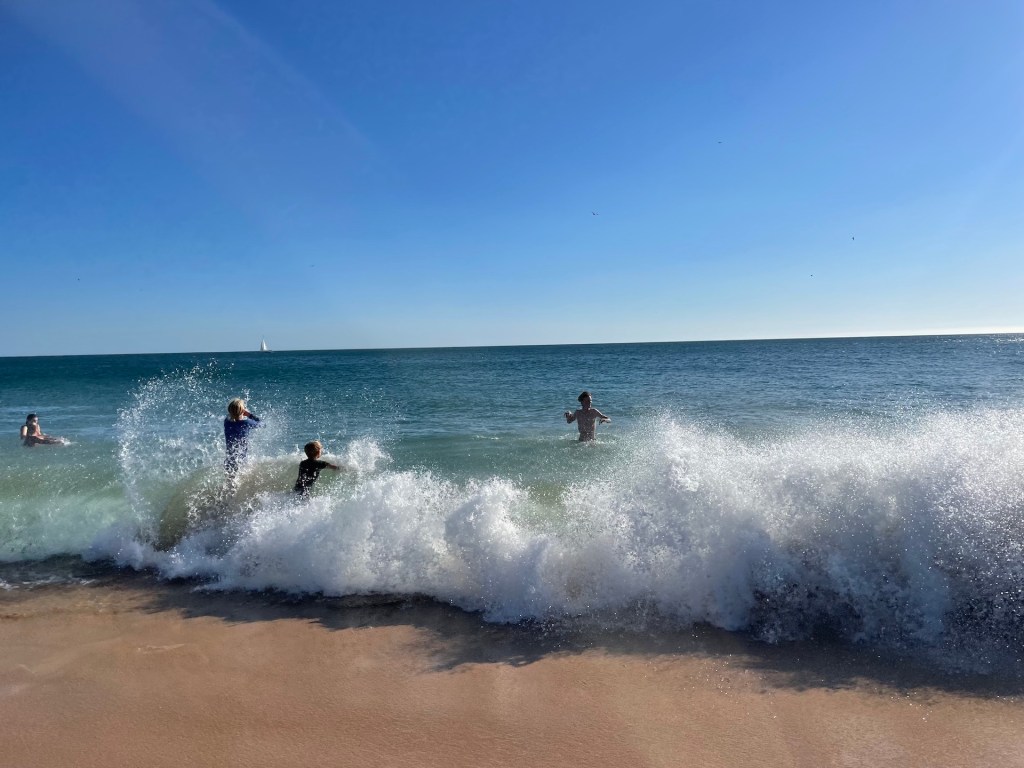 The days have been almost the same, school in the morning until lunch, then heading to the beach. The kids love to swim in the big waves ![]()