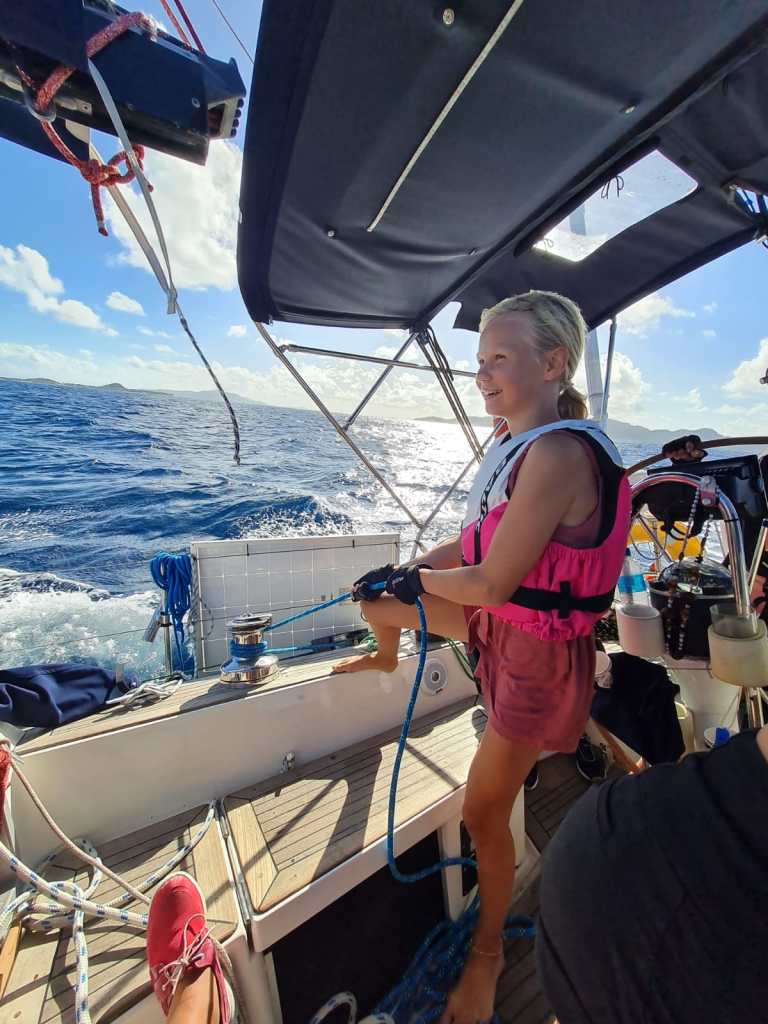 One leg, from Chatham Bay to Tobago Cays, the kids decided that they wanted to sail together. So two boats, unfortunately not ours, got a lot of extra crew. For some reason, they took over and did everything on the boat and really enjoyed sailing “It is so fun to sail – when we are doing it with our friends!”.