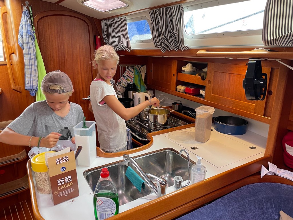 The kids have been introduced to a new game “The Bored Box”. A game that one mom, Val, from another kids boat has invented (while in lockdown in the Mediterranean). The game is simple but ingenious. You have a box with a lot of small paper notes, on each of the notes it says things that you have to do, for example “Play a game of yatzy” or “Bake a cake”. And the rules are easy, you decide if you want to be in or out. If you are in, you have to participate and do what the note says, and if you are out, you are not allowed to participate. And the kids love it, so now we have made our own “Bored Box”. And if there is any discussion regarding the rules, the kids says “You can ask Val about the Bored Box rules”.![]()