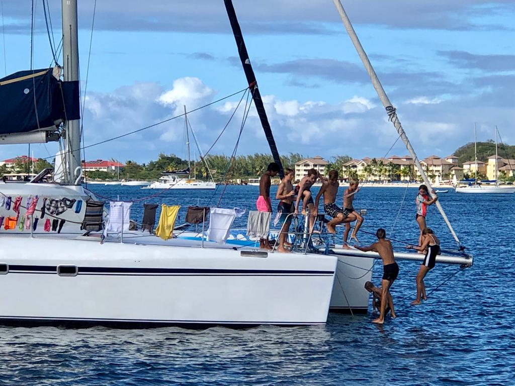 No week without a birthday party! The marina in Le Marin, anchorage in Le Marin and St Anne is spread over a bit too large an area for the kids to take the dinghy back and forth on their own. So 10 kids boats moved to a secluded anchorage outside St Anne instead. Now all the kids could all hang out together and have a nice birthday barbeque party at the beach!