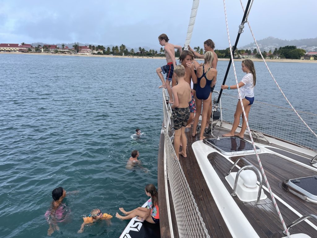 They are definitely living their best life; and have really found their rhythm of having the boat be their classroom. The only real struggle is that the saloon is a little bit too sunny, so it is sometimes difficult to see the computer screen. All the other kids are also in school, and we all have the same rule, the VHF is turned off as long as school is in session. But the second they are finished with school, the radio is on at channel 69, and the day’s plan is being formed.
