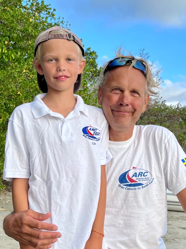 The setup was the same as last time: 16 teams with one adult and one child, except for one team with kids only (Axel and a friend). The rules are simple: the child has to helm and steer the dinghy. A lot of boats capsized in the heavy wind (we had gusts of +20 knots) so Atle learned the expression “Det var en riktigt rökare!” from Göran (“It was a smoker!”). They did really well in the heavy wind and it was pure happiness to see the team spirit. The races continued almost the entire day, and we are so impressed by everyone, all the teams that participated, and all the adults that organized it and made it happen. The day also ended in the best way, with a big barbecue on the beach. We will see if we’ll make it to the next cup, the Antigua Cup.