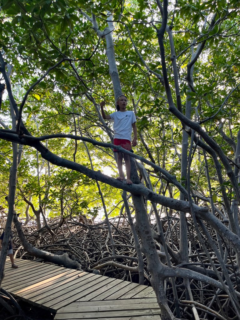 ). To access land, we landed the dinghy right into the mangrove trees and climbed from the dinghy over the mangrove to the hiking path. Hiking with other families is not only fun, it is also educational. Now our kids know how to show which way they take if they are in front and want to ensure followers take the same direction.