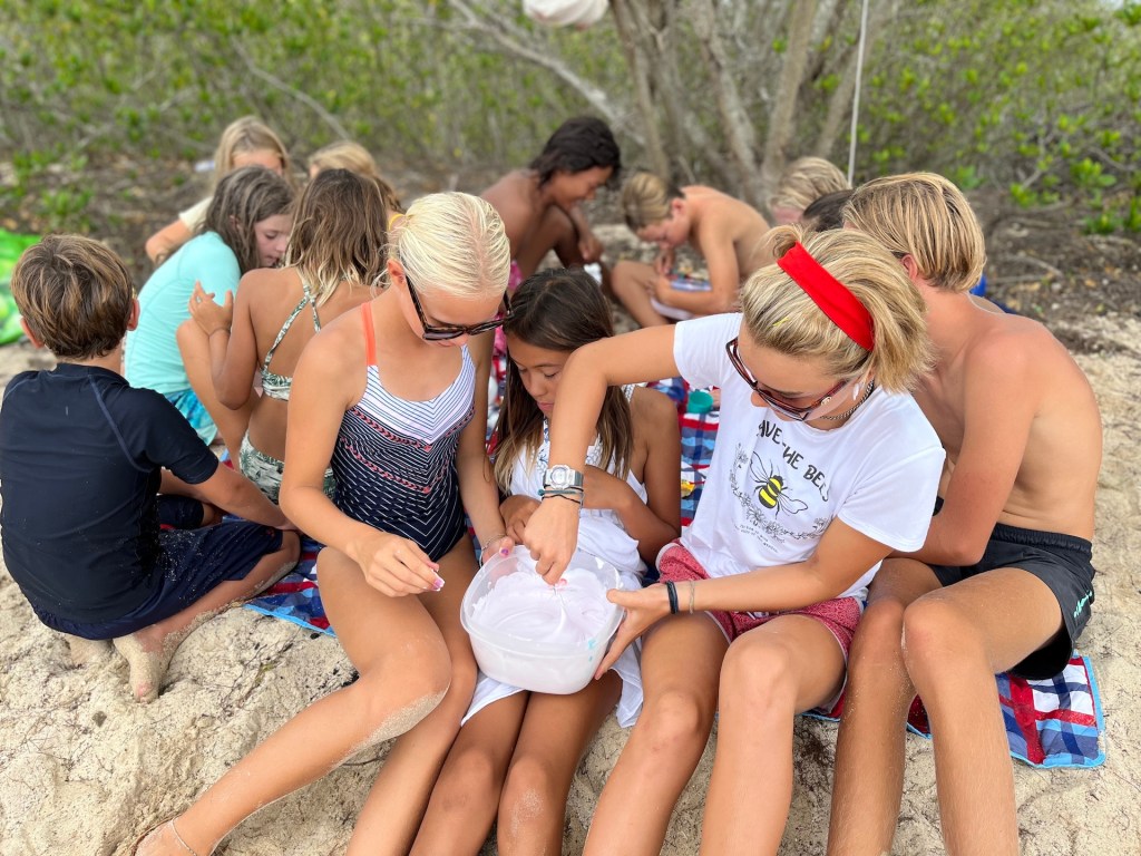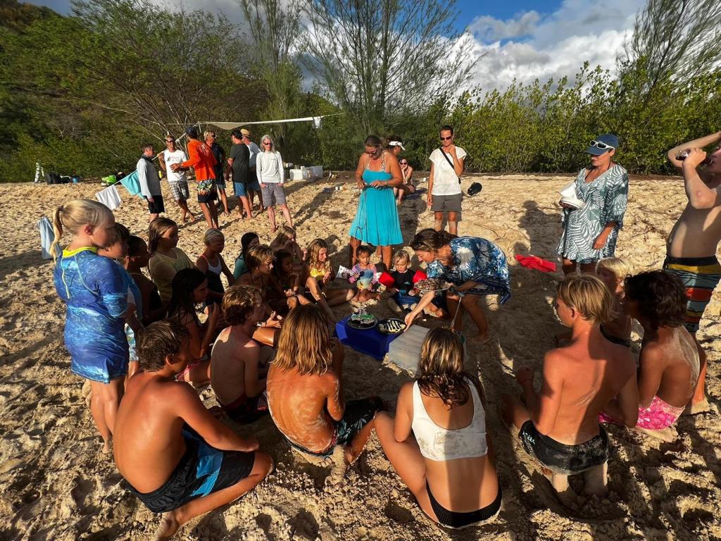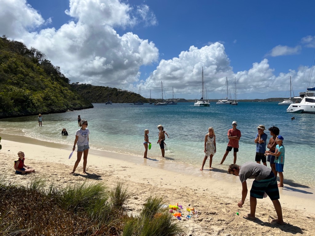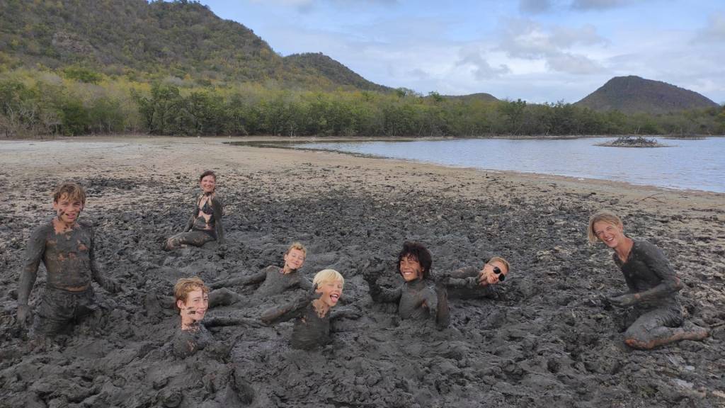 A wonderful celebration of two girls on the beach together with friends. The kids had a treasure hunt, the treasure was all the ingredients to make slime. Also, just near the beach, there was a mud hole, where the kids played. All the parents collectively decided that after the slime and the mud hole, no kids were allowed on the dinghies – all had to swim back to the boats… ![]()