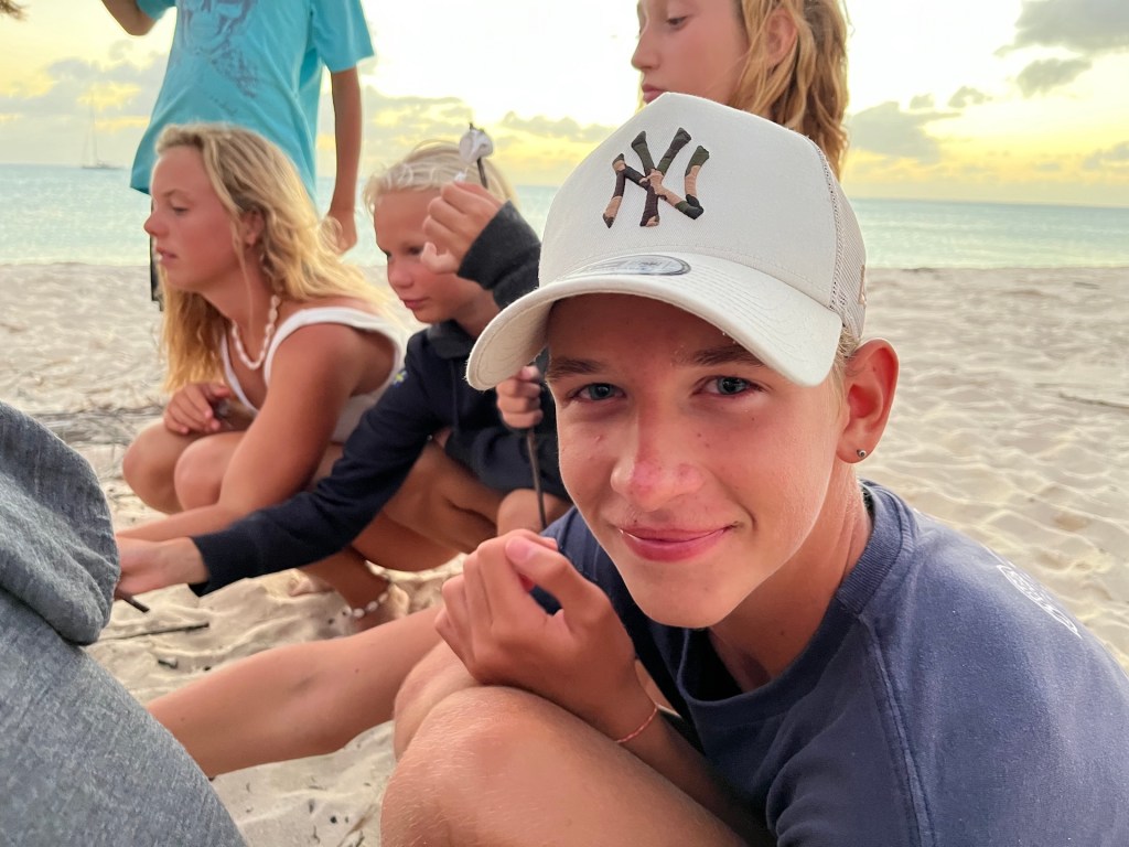 Monday morning and we decided to go back to Barbuda. Yes, it was windy and rather big waves, but we really wanted to go back to Barbuda one more time. After a rather rough bit of sailing we arrived at Coca Point and the reef outside. It was actually relief to take the sails down for anchoring. As we turned the engine on and headed up wind we put the gear in forward, but nothing happened. We tried again, but nothing happened. The throttle cable was broken! Quickly Jonas instructed us what to do: Sanna was controlling the throttle directly on the engine, Atle and Alma were helming and Axel helped Jonas with the sails and the anchor. Everything went well and we are glad that we are such a good team after months practicing on the boat!