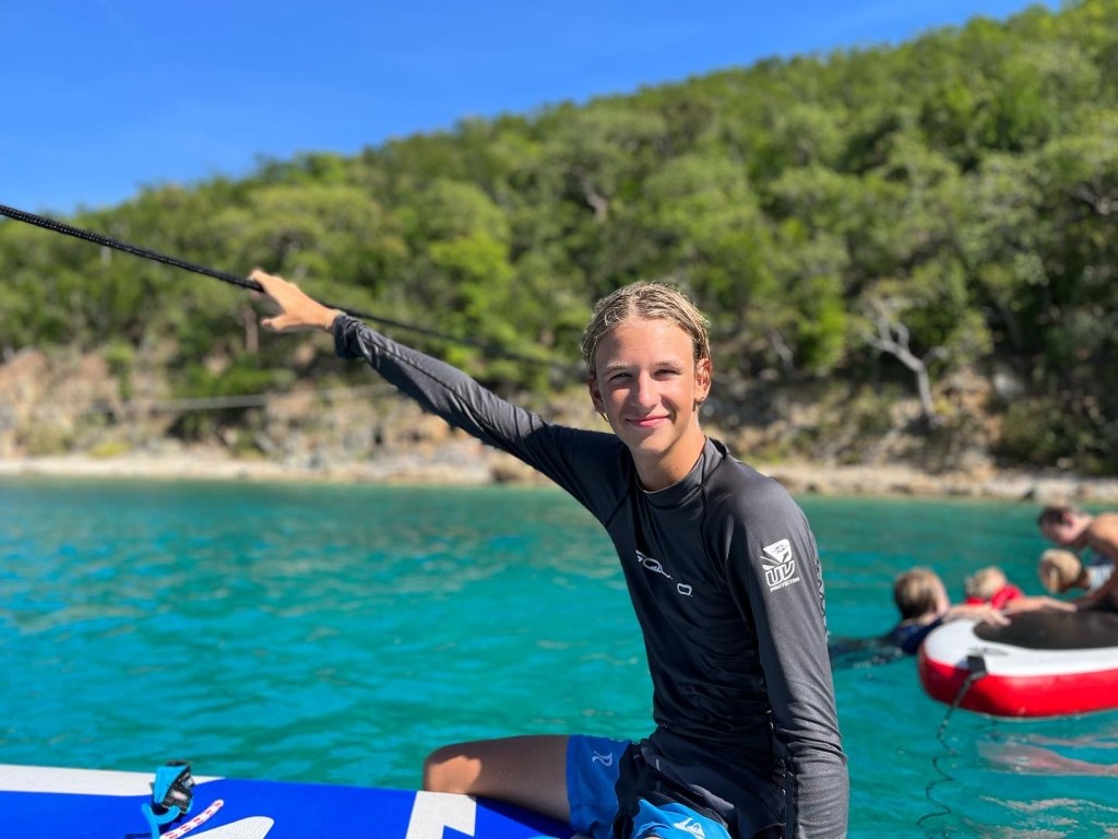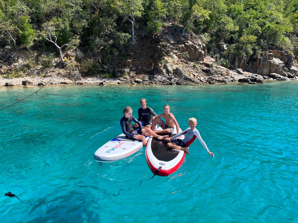 Last week we focused on hanging with all our friends, in a quiet bay, with all the kids boats next to each other. The bay was also perfect for wakeboarding, so that is what the kids were doing, most of the day. And they all were so brave to give it a go, helping and supporting each other, so fun to see. ![]()