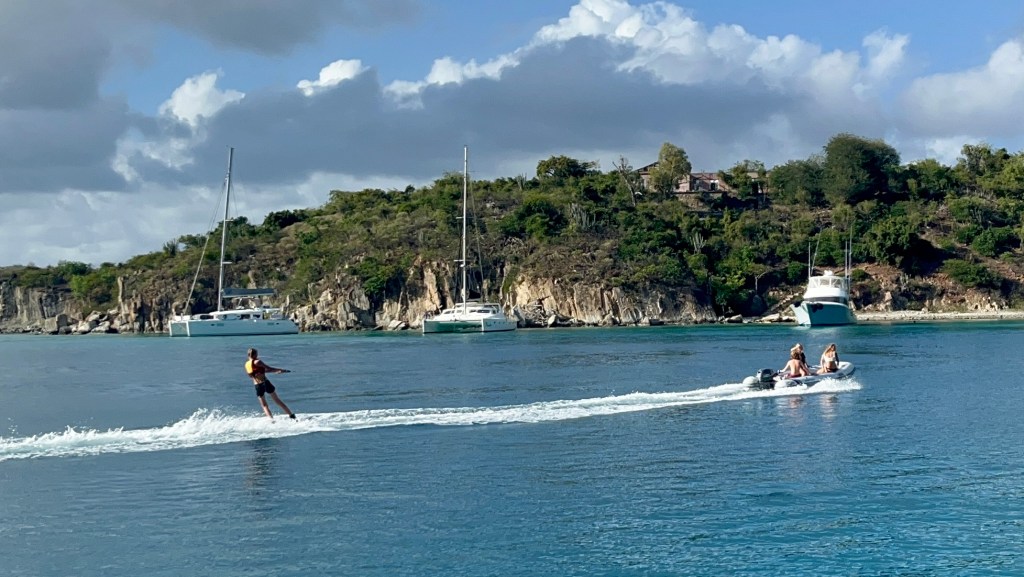 Still, we have some more weeks, first here in the BVI and then one week that we might spend in Anguilla. It is extremely easy to cruise here in the BVI. Everything is so beautiful and the anchorages are close to each other, and often you are protected from the ocean waves when you go between the islands. But it is also very crowded, with Americans on spring break and Puerto Ricans celebrating Easter – traditional style – in large sport fishing boats. There are also a lot of moorings which prohibit anchoring, practical for the charter boats, but makes it more expensive for us cruisers.